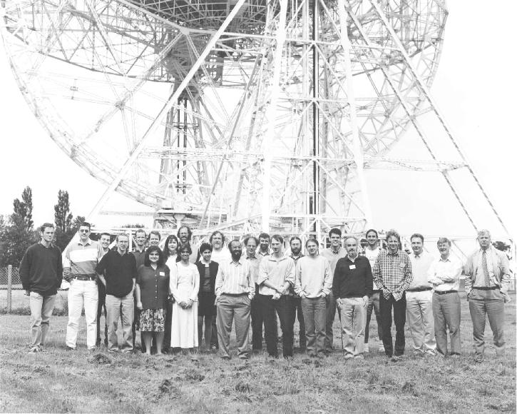 A tentative identification of the participants, from left to right, is: Oliver Prouton, Leon Koopmans, Alex McGuinness, Dan Marlow, Andy Biggs, Emily Xanthopoulos, Chris Moore, Liz Corbett, Sunita Nair, Ger de Bruyn, Liliya Williams, Richard Porcas, Alok Patnaik, Peter Schneider, Paul Schechter, Bernard Geiger, Phillip Helbig, Olaf Wucknitz, Chuck Keeton, Ian Browne, Ari Maller, Jens Hjorth, Tomislav Kundic, Dennis Walsh, Peter Wilkinson.
